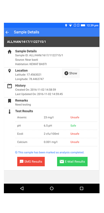 Keep track your water samples and test results. Share sample test results instantly over SMS and E-Mail.